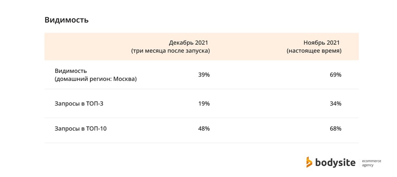 Основная и самая частая проблема магазинов в начале SEO-продвижения — это несоответствие архитектуры каталога товаров поисковым запросам аудитории. Абсолютно для каждого проекта мы ее расширяем, добавляем дополнительные варианты классификации, углубляем иерархию, добавляем фильтры и характеристики. Это обязательный этап, который занимает время, поэтому заказчику приходится ждать первых результатов SEO примерно 2-3 месяца.