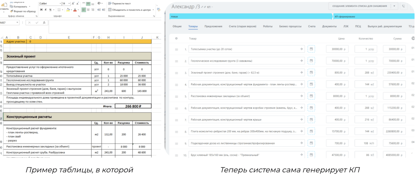 Сокращение времени на создание КП: Время на подготовку коммерческих предложений сократилось на 80%.