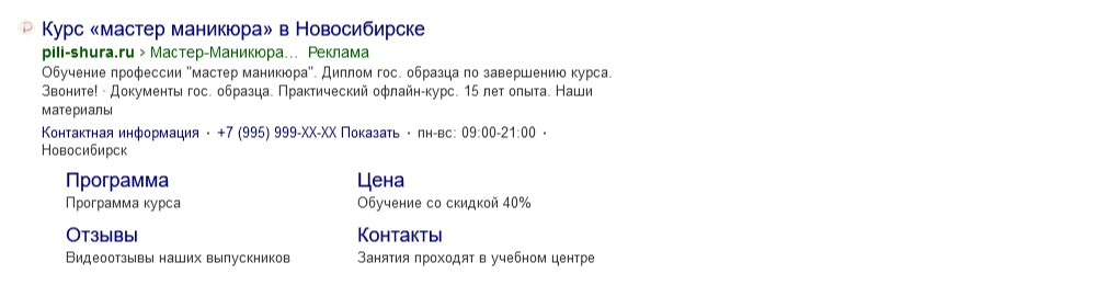 За 1,5 месяца мы собрали достаточно статистики и остановили показы по малоэффективным фразам (например, «образование парикмахера», «сколько стоят курсы маникюра», «курсы маникюра цена»). Причины малой эффективности разные: в некоторых случаях слишком высок процент отказов, в других CPL (Цена за лид) значительно превышала средний показатель.