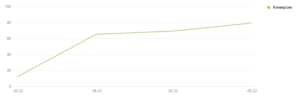 Количество конверсий росло еженедельно, но не так быстро, как в первые полтора месяца (и не так быстро, как нам хотелось бы):