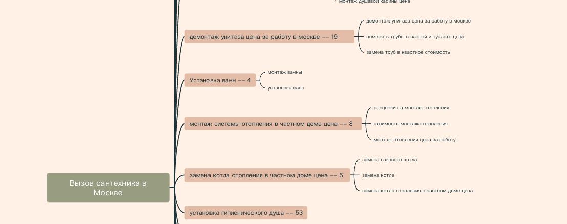 Далее собираем семантику, приводим это все в структурный вид и начинаем наполнять сайт контентом. (Фото 1 - Пример структуризации потенциальных посадочных страниц.)