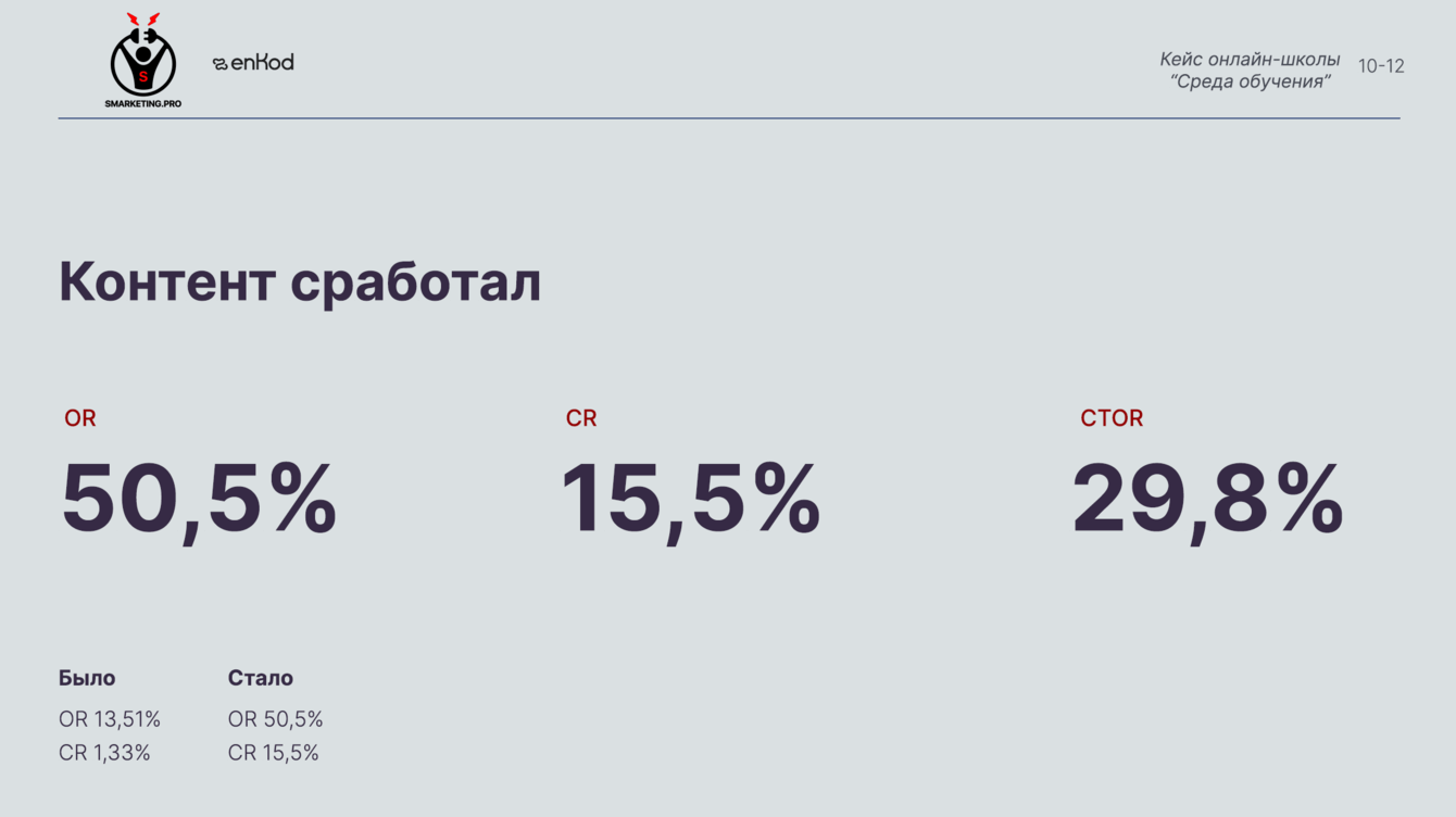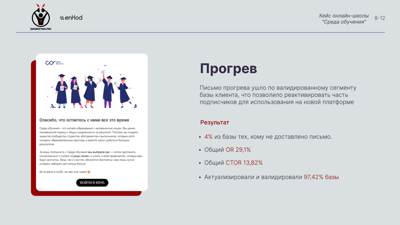 Спасибо команде smarketing.pro и платформе enKod, так как без них нам сложно было бы достичь таких результатов!