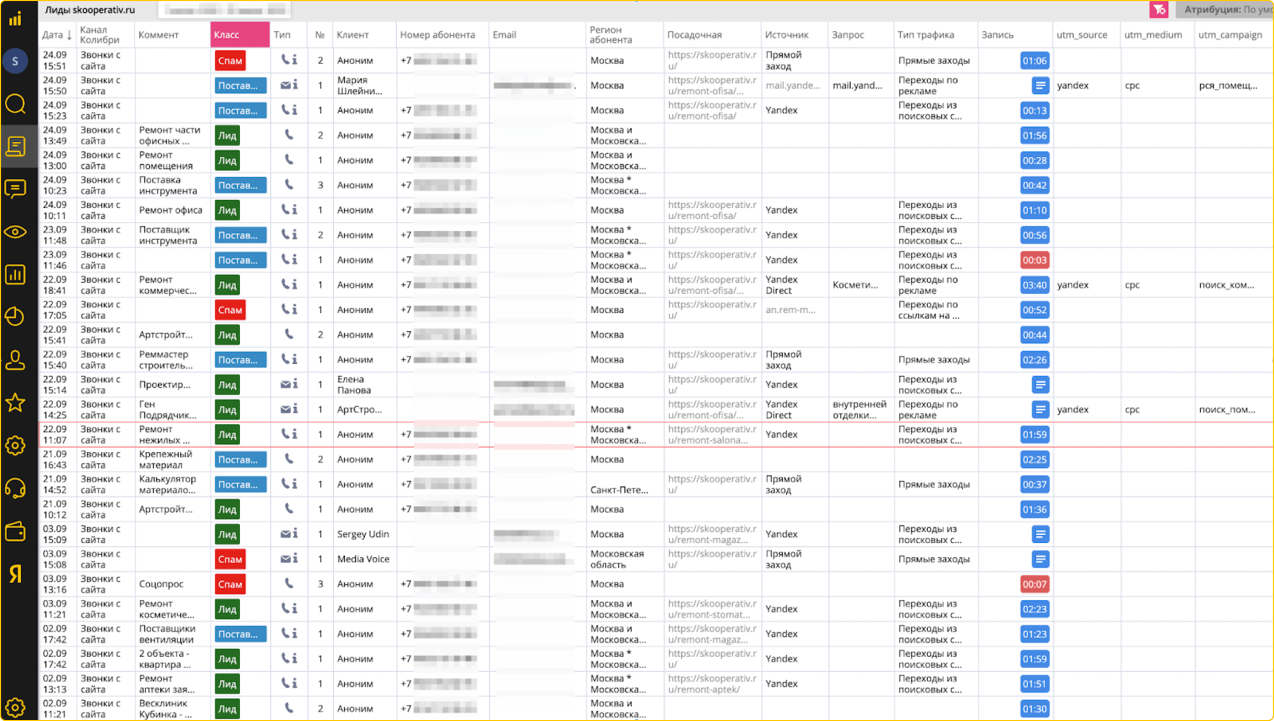 Callibri также позволил фильтровать спам – например, обращения от поставщиков и тендерных площадок. Благодаря этому мы точно видели, какие заявки пришли из контекстной рекламы.