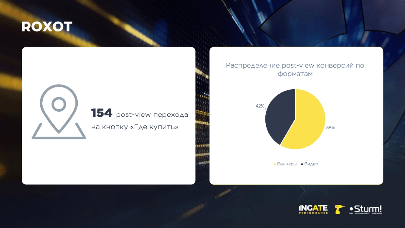 Конверсия в post-view в Roxot составила 0,002% — наименьший показатель среди всех систем. Большая часть конверсий пришлась на баннеры, а не на видео.