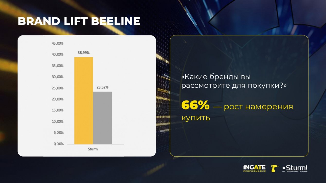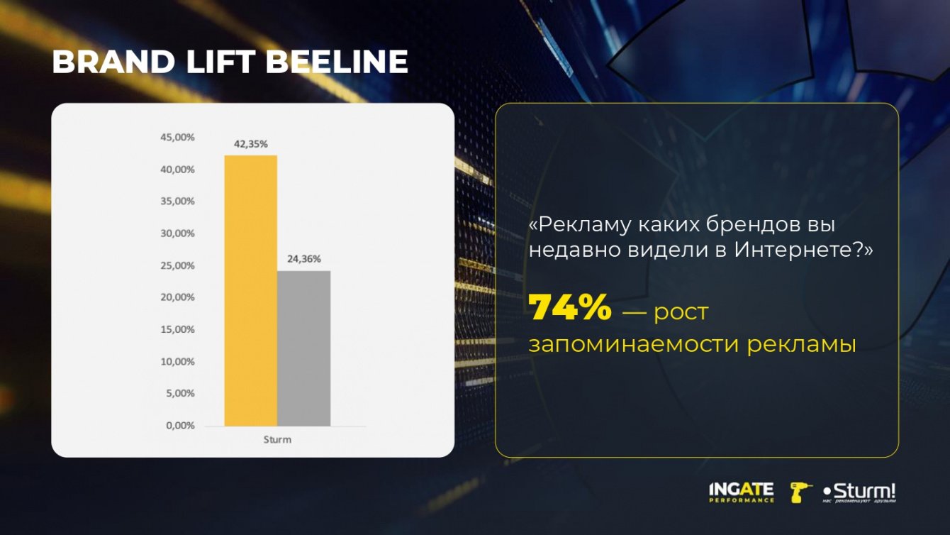 Для того, чтобы замер результатов с помощью Brand Lift (которые делали в «Яндекс» и Beeline) был корректным, все каналы запускали последовательно: