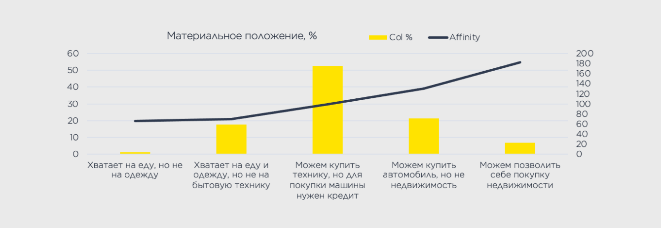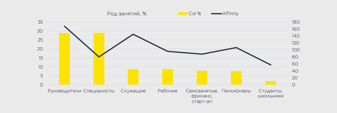 Высокий Affinity также был среди пенсионеров, но в общем объеме это небольшой сегмент аудитории, поэтому не стали включать их в текущую РК.