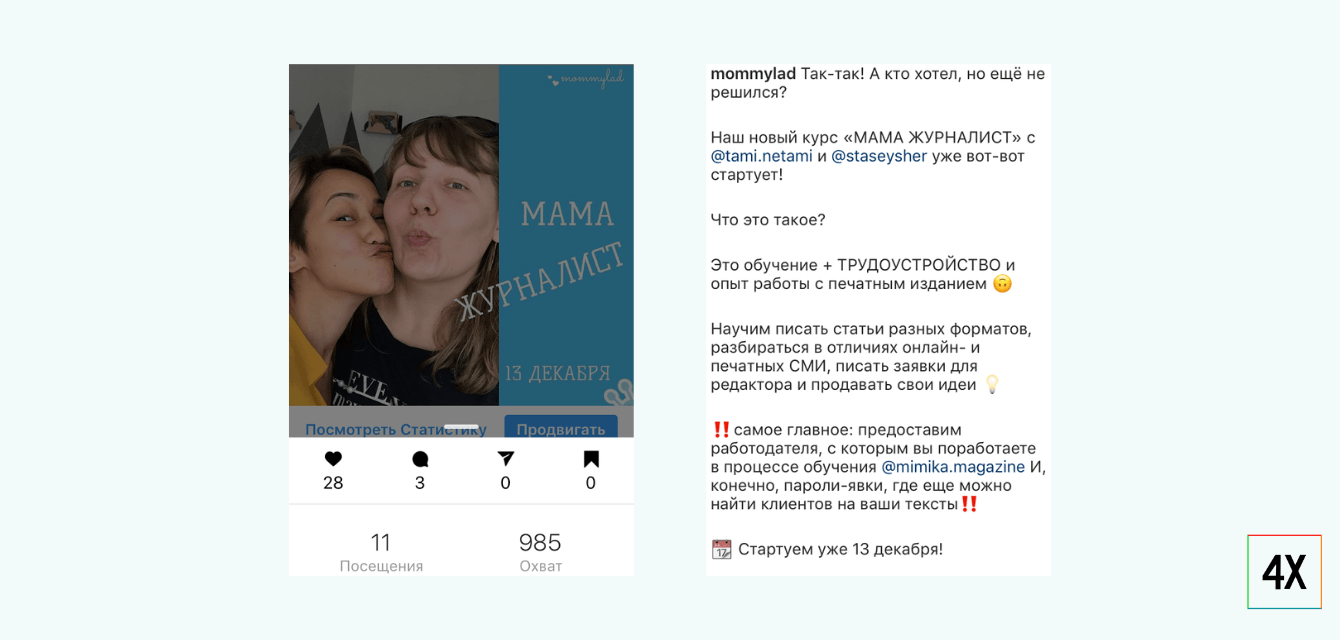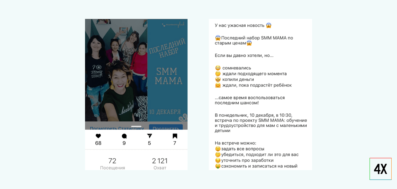И ещё кое-что важное — продажи. Благодаря постам в инстаграме* набрали 2 полные группы на курс по SMM, группу на новогодний утренник для детей от 3 до 5 и множество групп на мастер-классы.