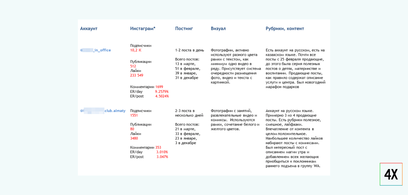 Показатели вовлеченности у конкурентов выше, однако анализ комментариев показал, что это результат участия в чатах активности. По факту реальные подписчики практически не реагируют на посты.