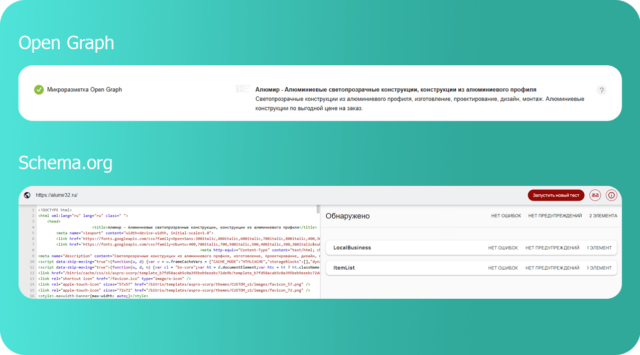 Добавили микроразметку для улучшения отображения сайта в поисковой выдаче: выделили контакты, товары и другие важные элементы.