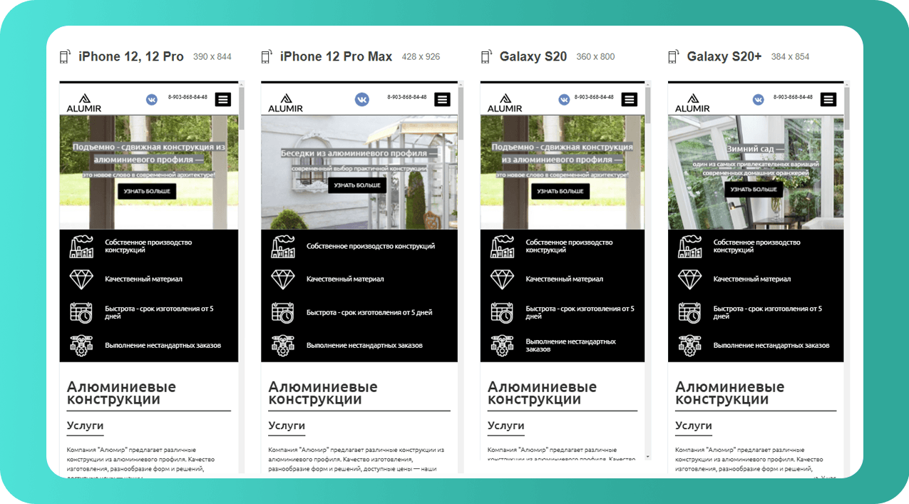 Хотя глобальные работы по SEO сейчас не проводятся, трафик на сайт, который мы сделали для «Алюмира», продолжает расти. Мы смогли этого добиться, сделав сайт лучше и удобнее, чем у конкурентов. Сайт нравится пользователям, а значит и поисковым системам. И уже более 5 лет сайт находится в топ-10 выдачи Яндекса и Google по ключевым запросам в своем регионе.