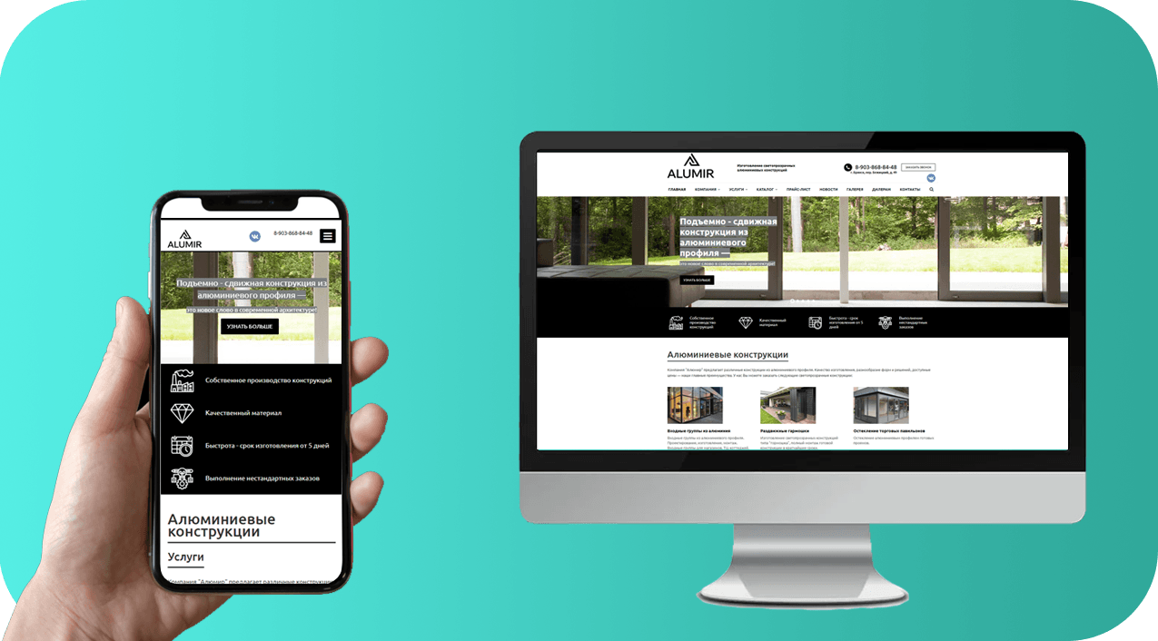 К нам в агентство обратилась компания «Алюмир» из Брянска. Они специализируются на проектировании, изготовлении и установке светопрозрачных алюминиевых конструкций. Среди продукции – алюминиевые двери, окна, перегородки, а также услуги по остеклению павильонов, балконов и зимних садов. У компании не было сайта, а значит все клиенты приходили только из офлайна. Чтобы начать получать заказы из интернета, нужен был сайт и целевой трафик на него. Мы разработали сайт, установили цели для SEO-продвижения и начали работу.