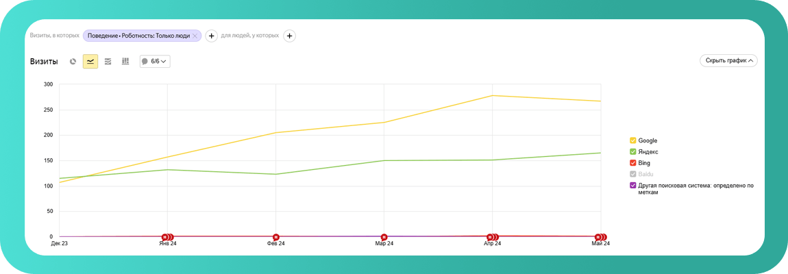 Подключили и настроили базовые параметры Яндекс.Метрики и Google Analytics для отслеживания посещаемости, поведения пользователей и эффективности страниц.