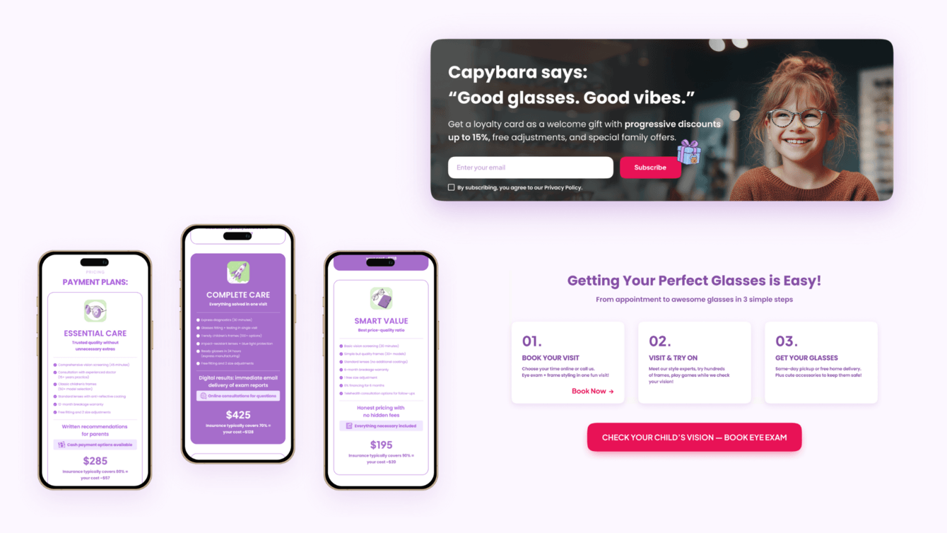 85% оправ покупают в офлайн-магазинах, но 76% родителей сначала изучают информацию онлайн. Если сайт их пугает, бизнес теряет клиентов ещё до того, как они переступят порог магазина.