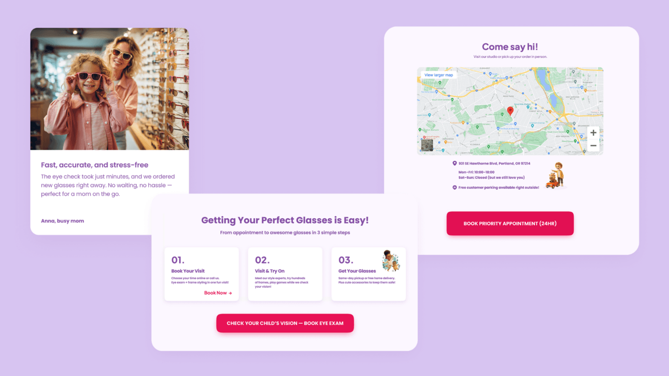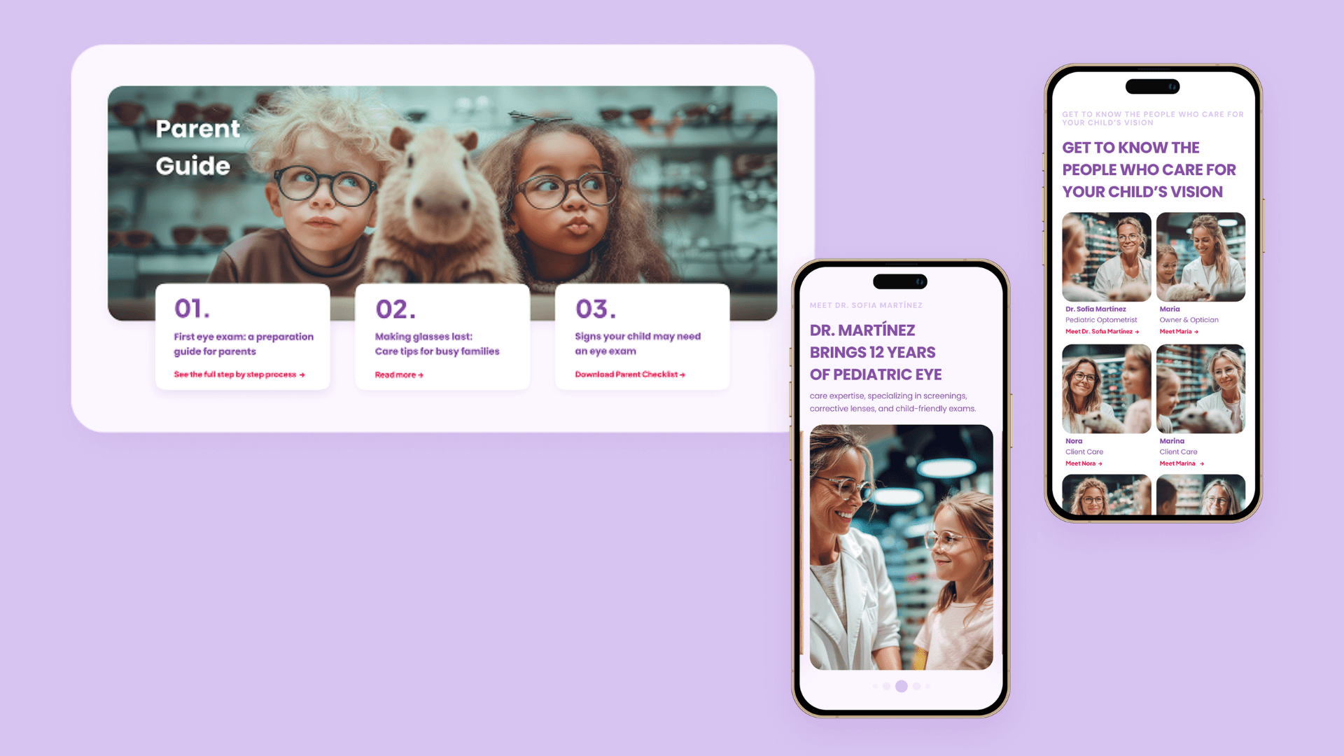 85% оправ покупают в офлайн-магазинах, но 76% родителей сначала изучают информацию онлайн. Если сайт их пугает, бизнес теряет клиентов ещё до того, как они переступят порог магазина.