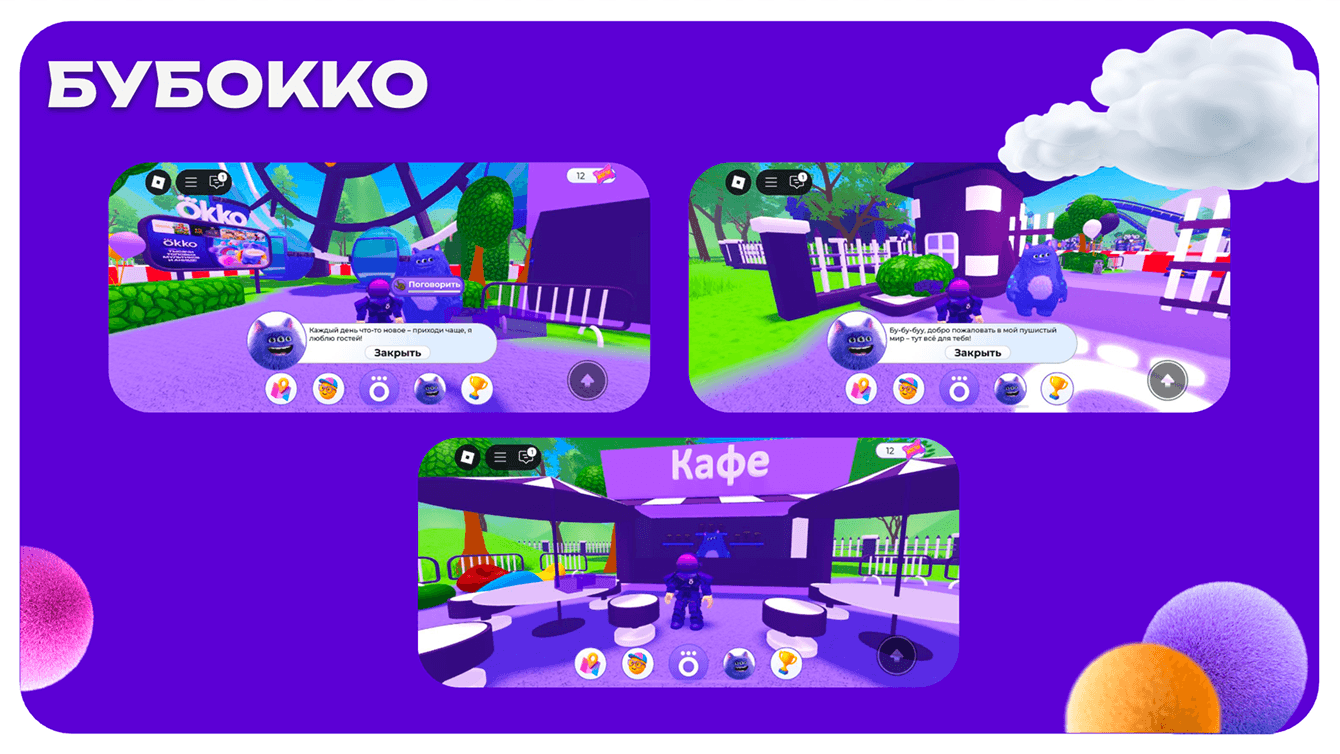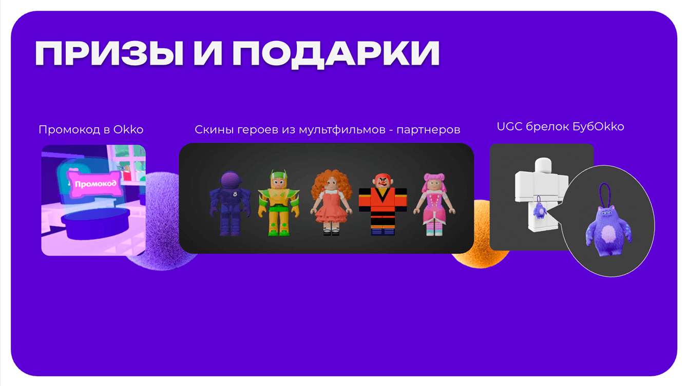 Мы проанализировали все самые популярные форматы, режимы и направления, которые любят дети и объединили их в одну большую вселенную. Так появился Okko World – большой тематический онлайн парк впечатлений внутри Roblox. В нём пользователи могли погрузиться в миры любимых мультфильмов через аттракционы и мини-игры, посоревноваться со своими друзьями, заработать призы и даже посмотреть кино прямо внутри игры!