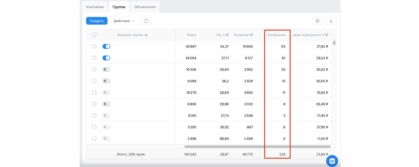 Аудитория, привлеченная через рекламные кампании, оказалась максимально целевой. Это подтверждают не только многочисленные подписки на сообщество, но и значительная активность пользователей в переписке сообщества, что наглядно отражается в данных статистики рекламного кабинета.