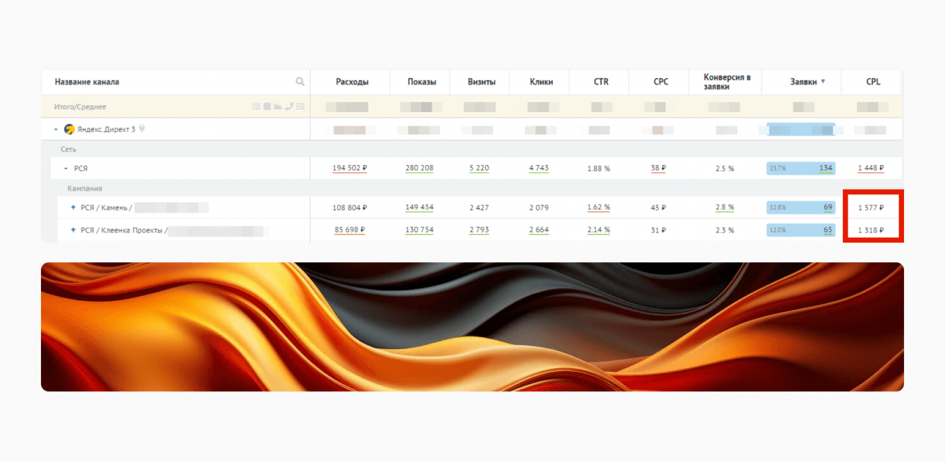 1. Стоимость лида: CPL на уровне 3500 ₽.