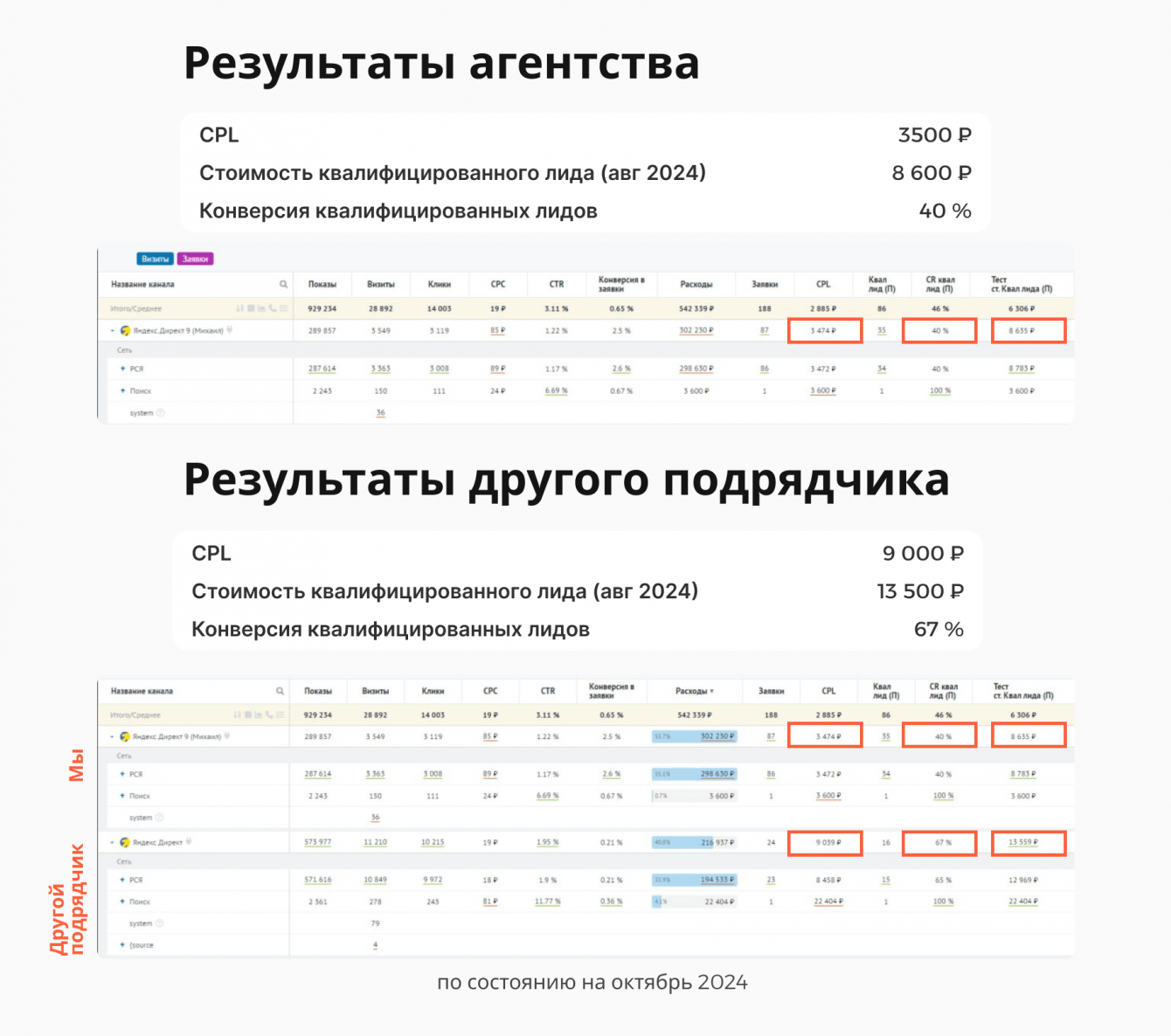 2. Стоимость квалифицированного лида: 8600 ₽ за октябрь.