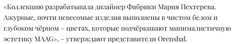 Однако просто отправить письмо недостаточно, важно, чтобы его захотели прочитать. Релиз MAAG и «Ореншаль» изначально был качественным, но чтобы он гарантированно попал в публикации, мы задействовали экспертную поддержку. Это помогло добавить детали и превратить материал из обычного анонса коллекции в значимое событие для рынка.