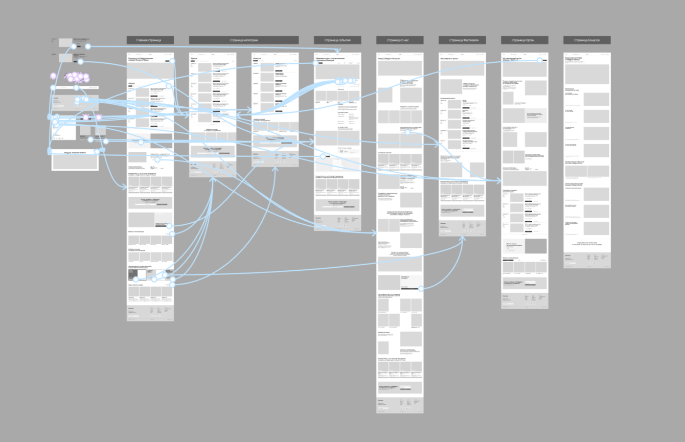 Следующим шагом стали интерактивные прототипы. Это важный этап, который позволяет заказчику увидеть, как будет выглядеть сайт до начала работы над дизайном.