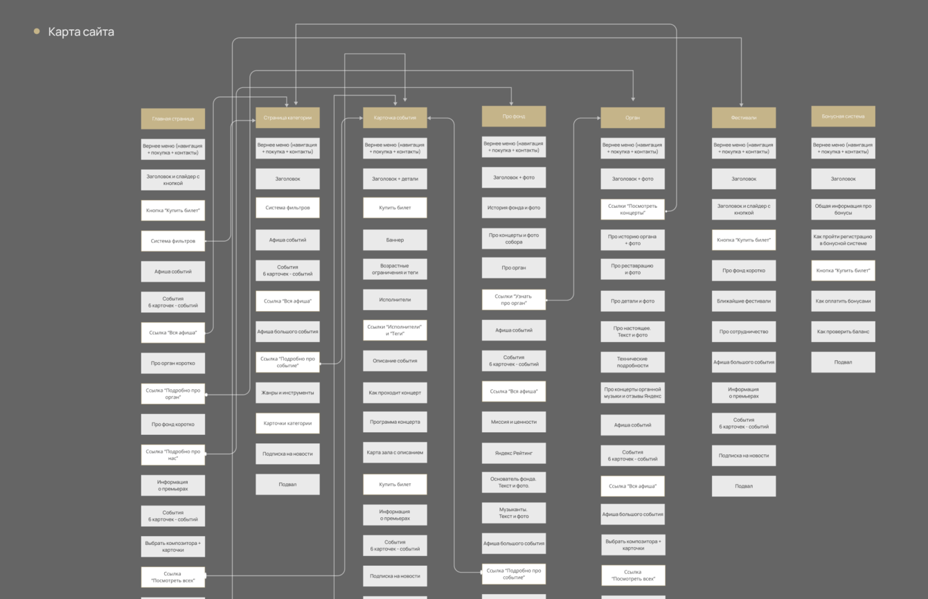 Прежде чем приступать к перепроектированию и дизайну, мы глубоко погрузились в текущую ситуацию. Составили карту старого сайта и проанализировали ключевые пользовательские сценарии.