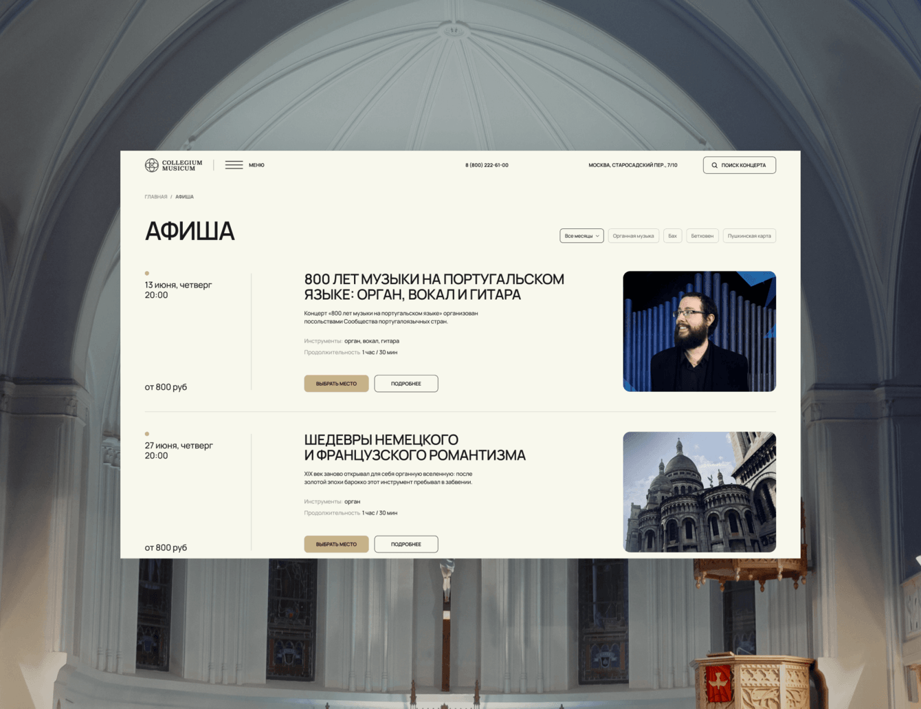 Заказчик: Фонд Collegium Musicum, который с 2013 года проводит концерты, погружающие гостей в мир классической органной музыки.