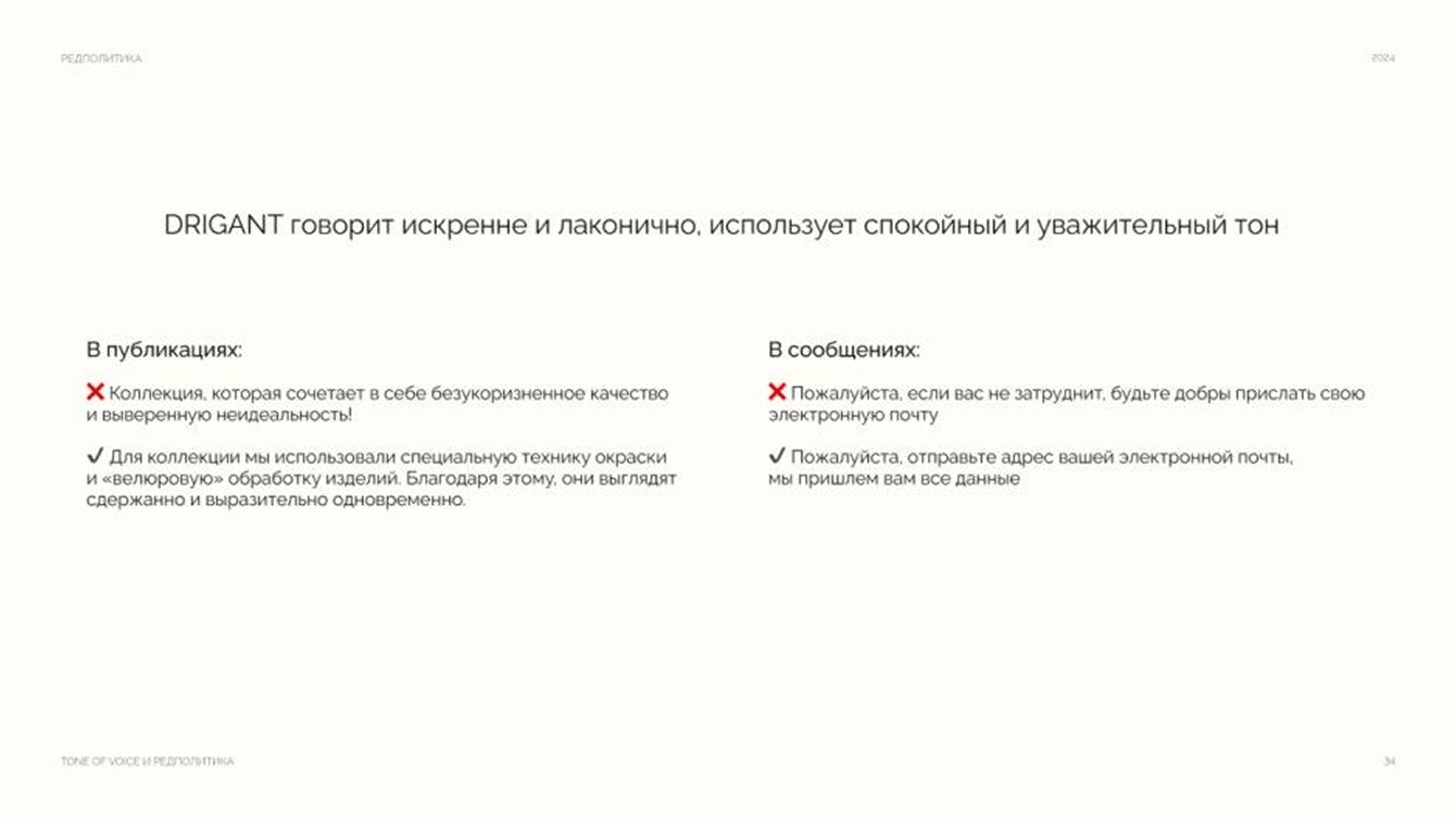 В коммуникации с аудиторией DRIGANT говорит искренне и лаконично, использует спокойный и уважительный тон.