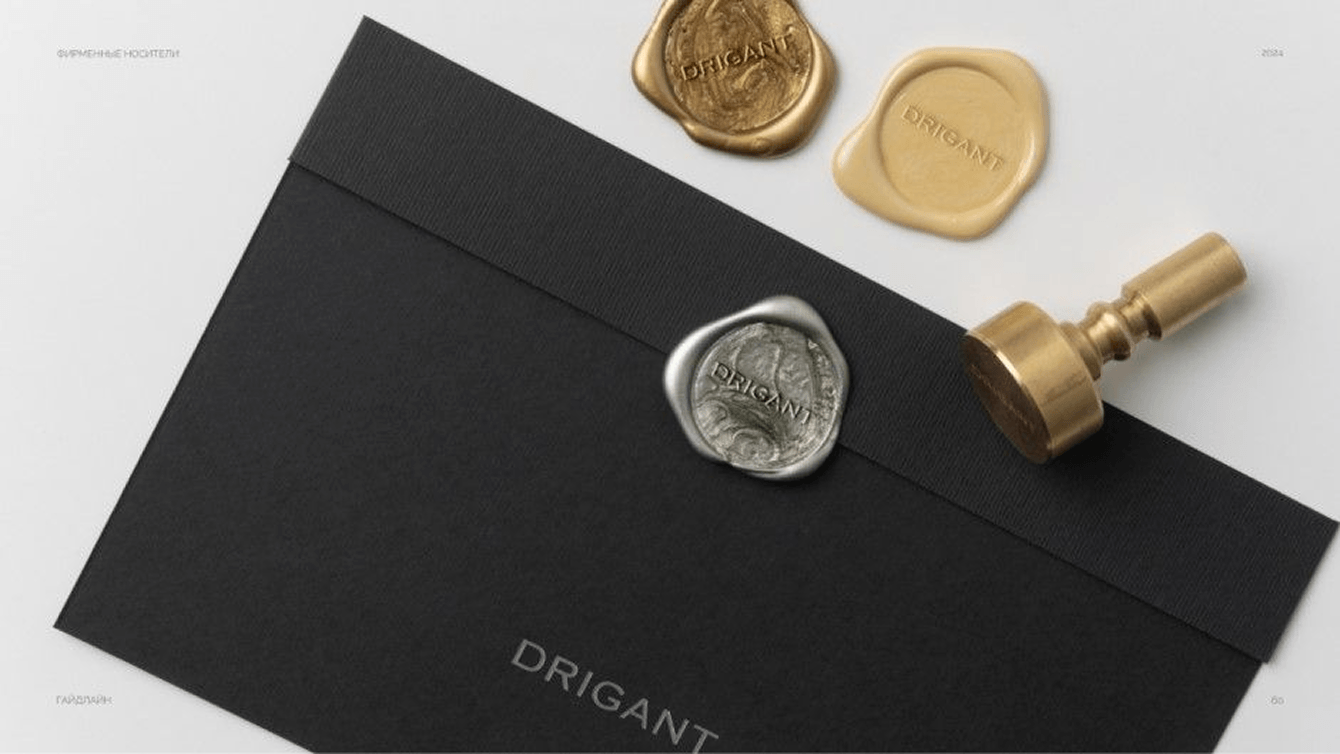 Например, для DRIGANT мы вручную отрисовали логотип. Он отражает идею достаточности и уверенности, что соответствует ценностям и миссии бренда. И состоит из названия бренда — классический нейминг, который работает на узнаваемость.