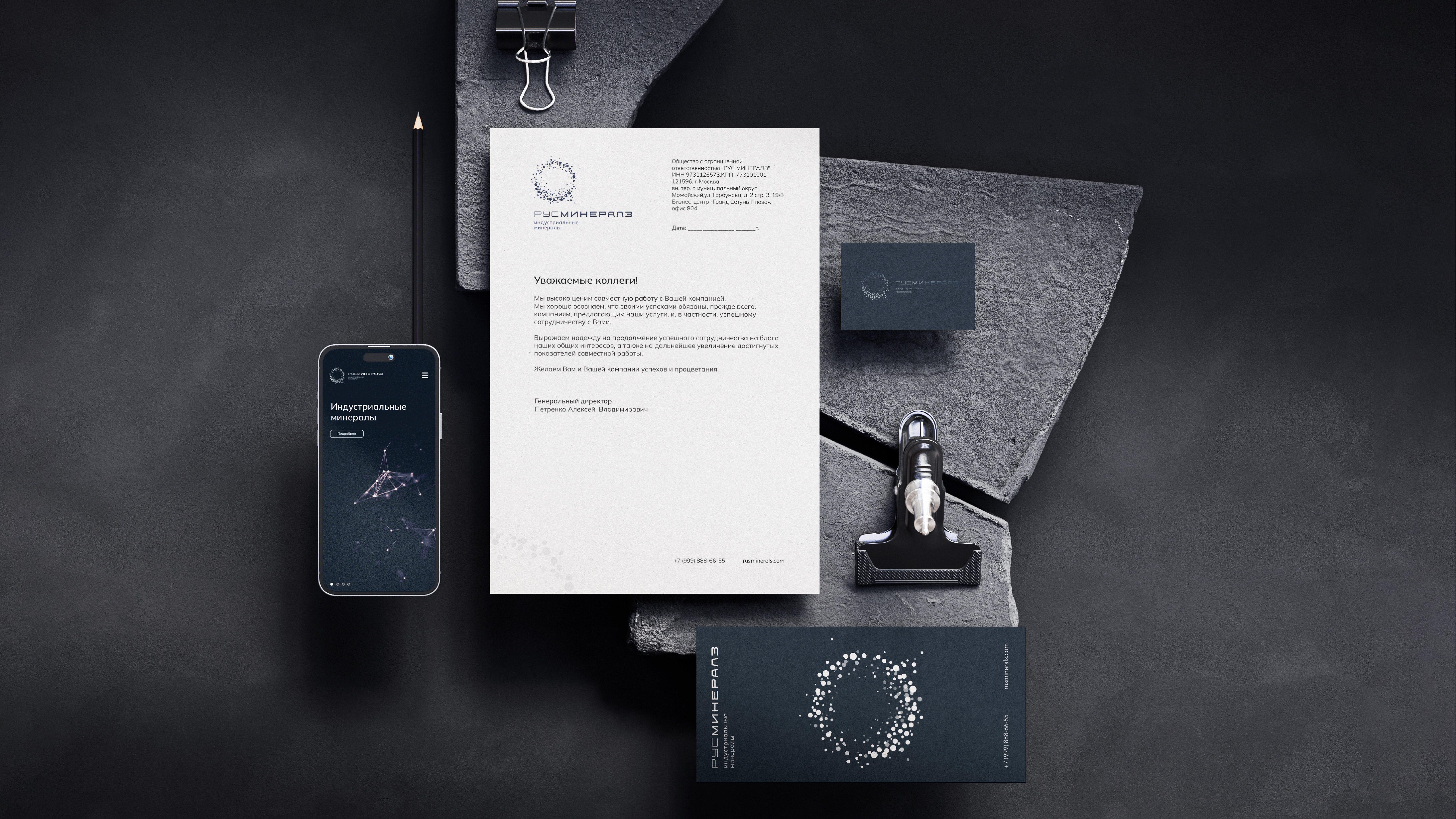 «Рус Минералз» — компания, создающая современные мультиминеральные решения для стекольной, литейной, нефтегазовой промышленности и строительства. Мы разработали логотип и фирменный стиль для нового бренда от команды профессионалов.