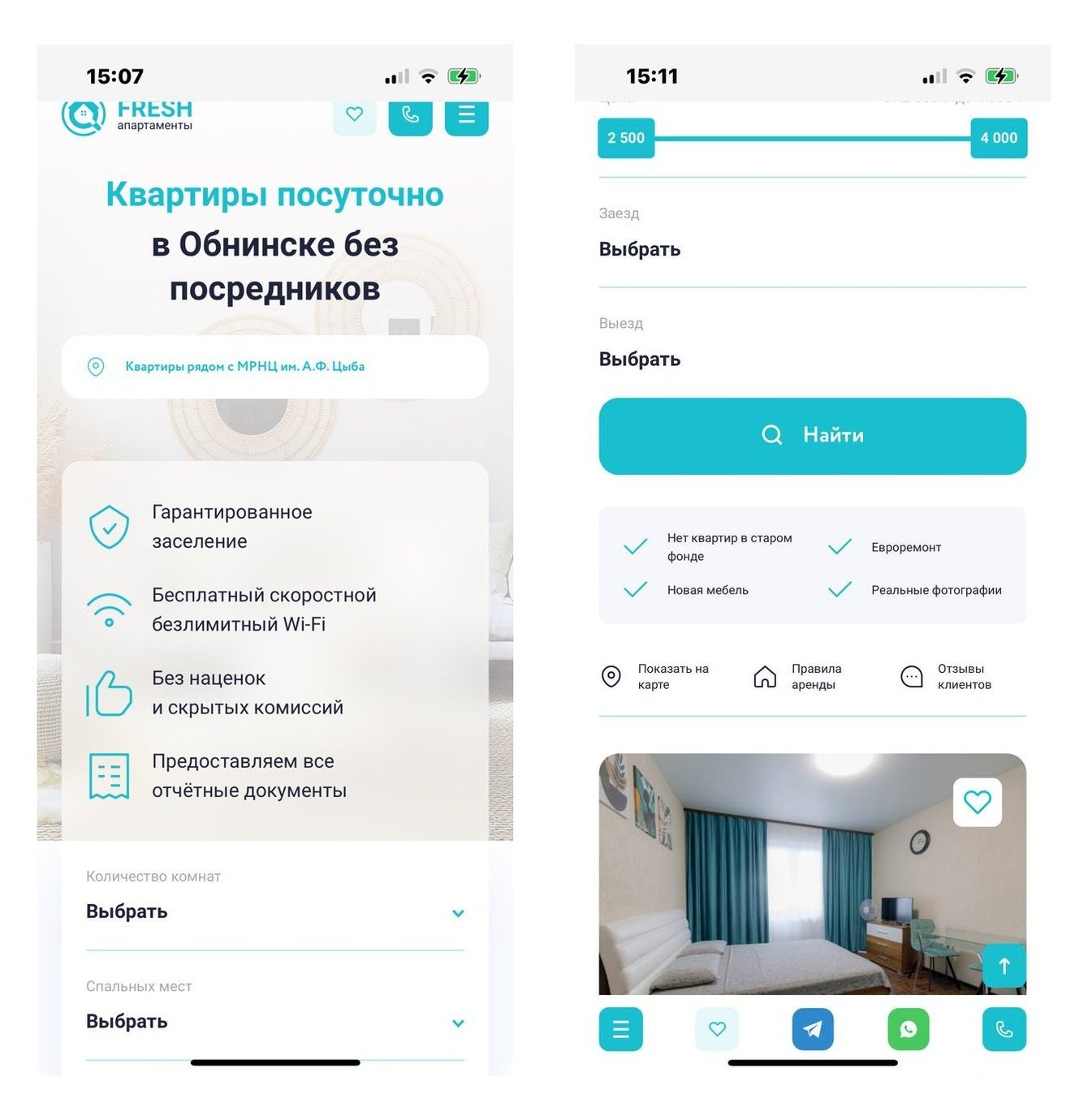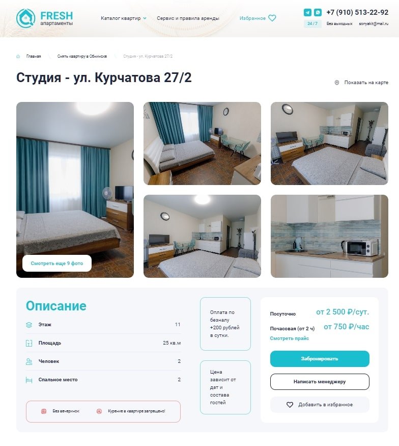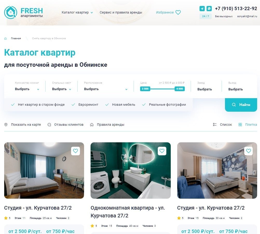 К команде AviGroup за помощью обратился компания, которая предоставляет почасовую и посуточную аренду квартир в Обнинске без посредников. Главным преимуществом компании является большой номерной фонд — более 70 квартир.