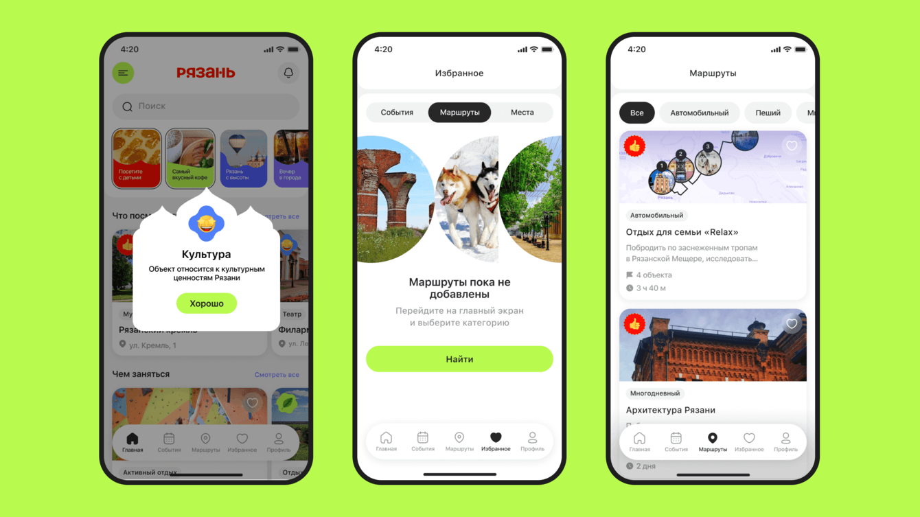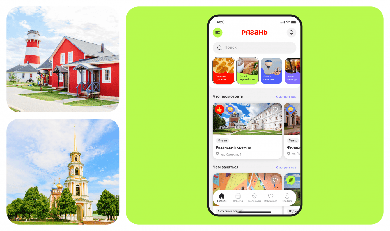 В 2023 году наша команда помогла Агентству развития туризма Рязанской области запустить мобильное приложение «Рязань. Путеводитель».
