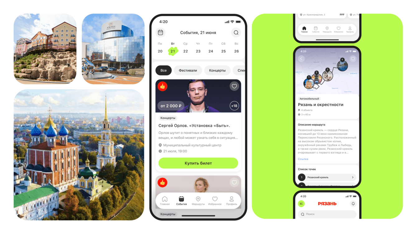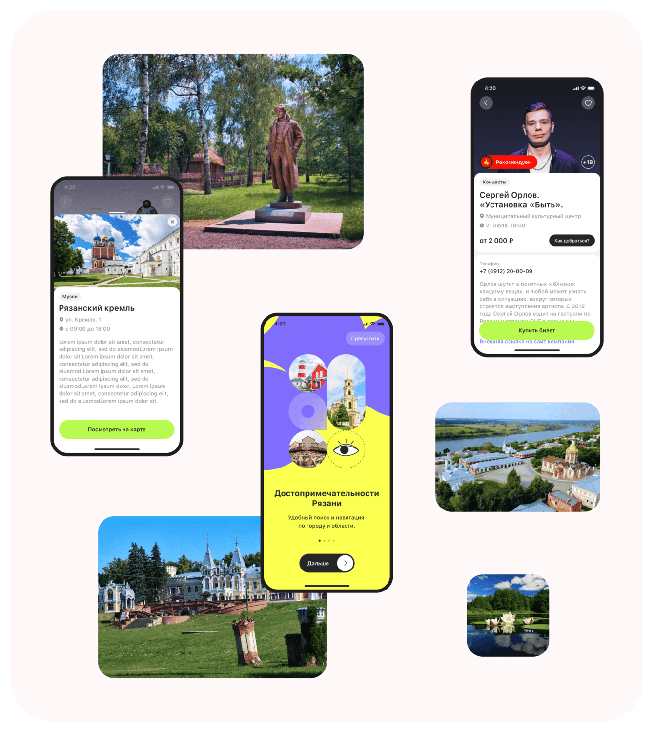 Первоначальной задачей стояла доработка существующего мобильного приложение заказчика, которое успело устареть и не встречало активного интереса со стороны целевой аудитории — коренных рязанцев и туристов, планировавших досуг в Рязанской области.