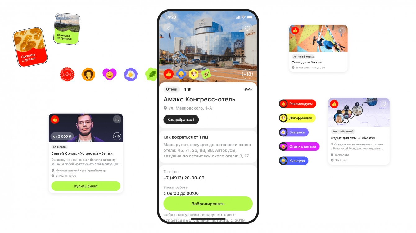 Агентство развития туризма Рязанской области получило от нас удобное для пользователя приложение, с помощью которого можно организовать отпуск практически «под ключ». Все основные активности собраны в одном месте.