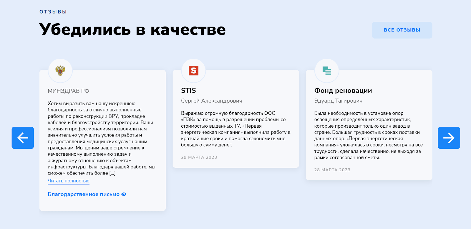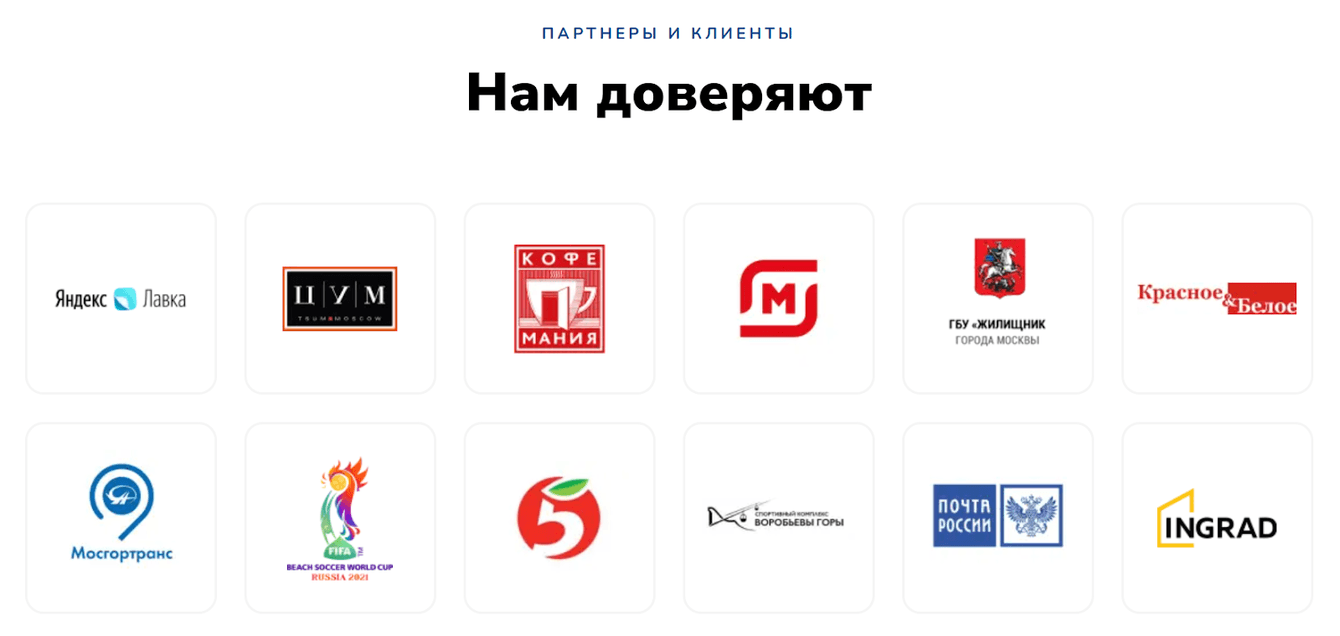 Экспертизу подтвердили логотипами партнеров и клиентов, а также отзывами