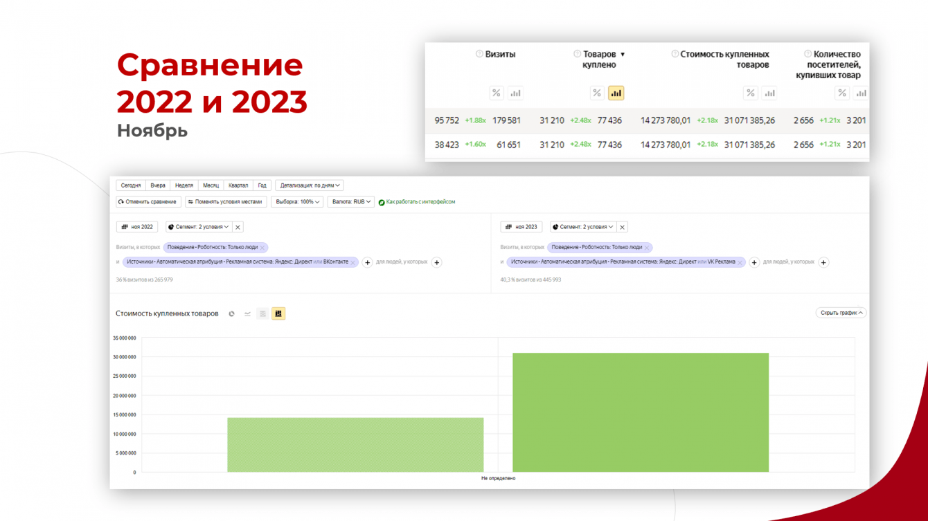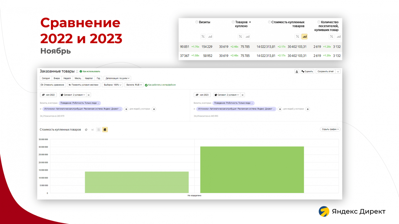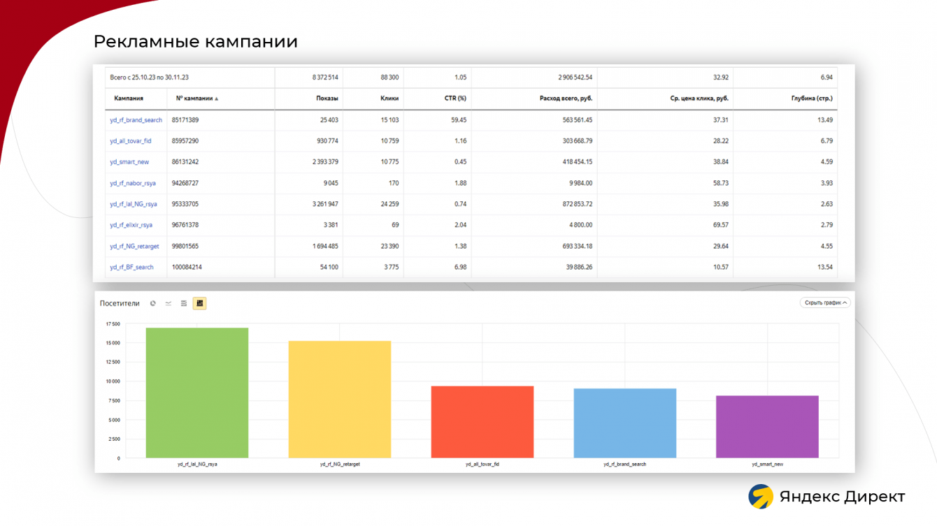 Во время основного этапа продаж подготовили тексты для рекламных объявлений и запустили кампанию по фиду на категорию наиболее популярных товаров на основе анализа электронной коммерций в Метрике.