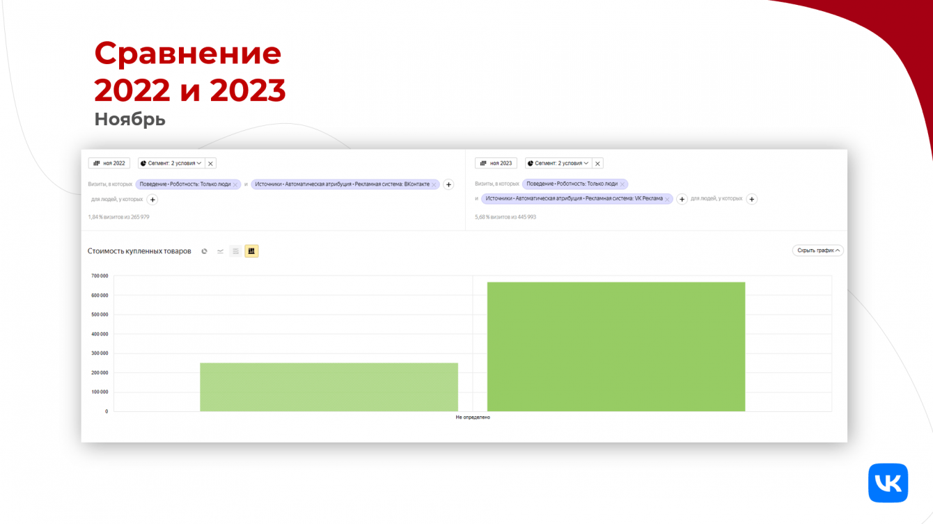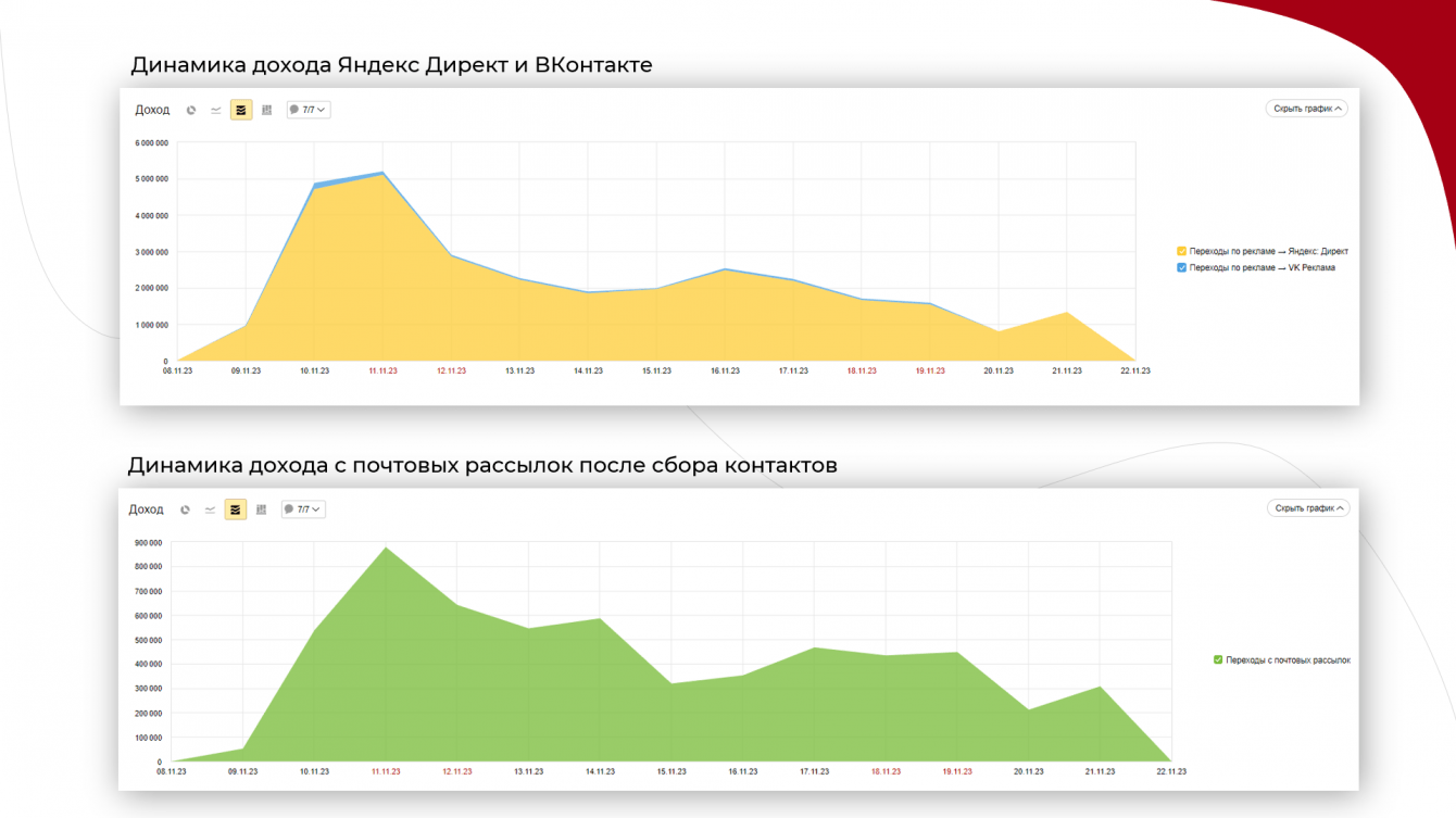 До "Черной пятницы" наиболее положительные результаты нам приносили пользователи с ретаргетинга, у которых уже были касания с сайтом или покупка товаров. А вот холодная аудитория отрабатывала хуже (одна из гипотез - продукция также размещалась на Ozon и Wildberries с более выгодными условиями доставки). Но нам нужны были продажи через сайт.