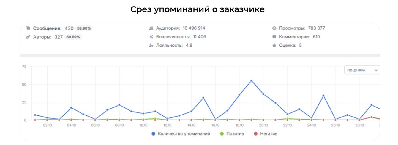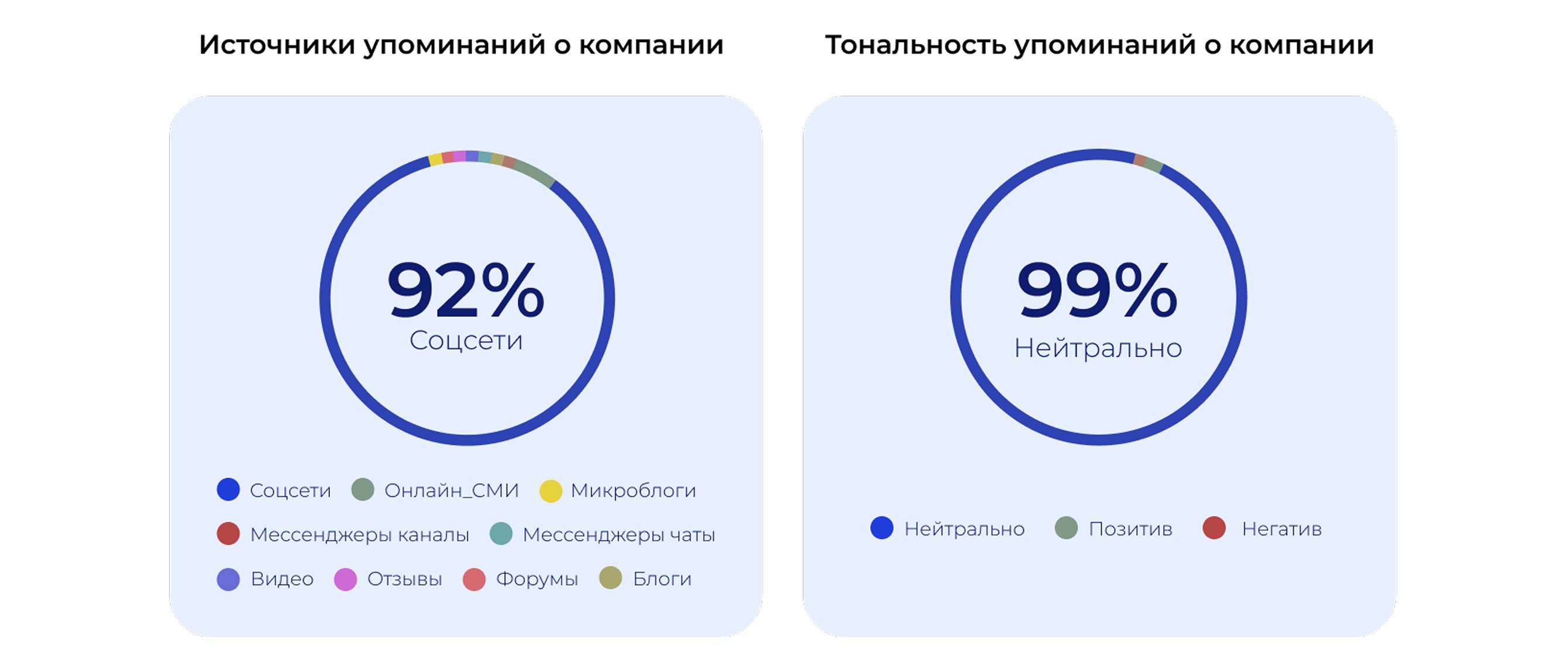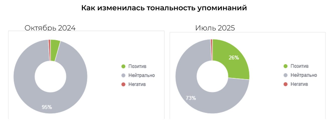 В сентябре 2024 года наблюдался всплеск активности — он был связан с пресс-релизом о госзакупке. Однако подавляющее большинство публикаций носило новостной или рекламный характер. Живых, личных мнений (WOM) почти не было. Общая тональность — нейтральная, но с высоким риском смещения в негатив из-за старых отзывов.