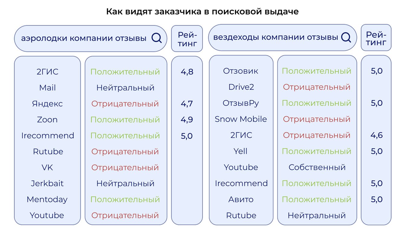 2. Старый негатив — ваш главный враг. Если он остаётся в ТОП-10, он продолжает формировать мнение. Вытесняйте его свежим позитивным контентом.