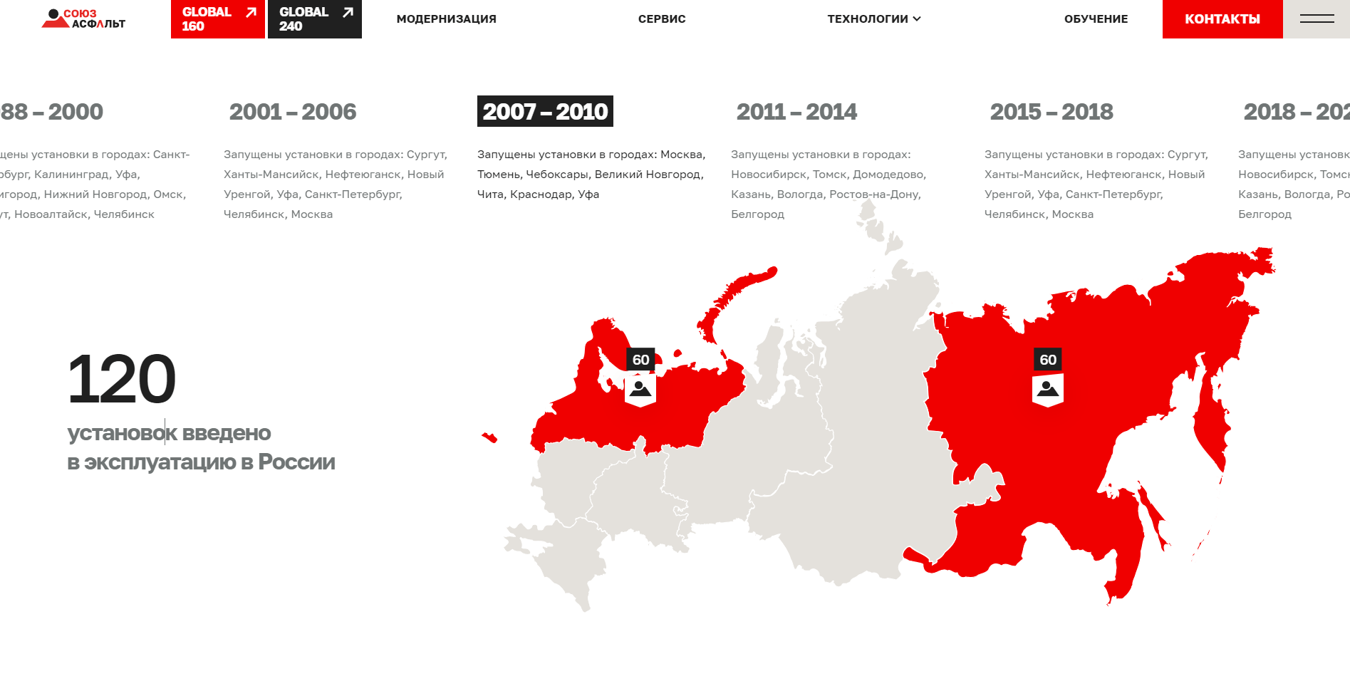Кроме того, показали масштабность проектов клиента. Например, в текстах на главной странице акцентировали внимание на многолетнем лидерстве в отрасли. Также упоминали, что каждый третий человек в России хотя бы раз в жизни ездил и ходил по асфальту, созданному на установках «СоюзАсфальт».