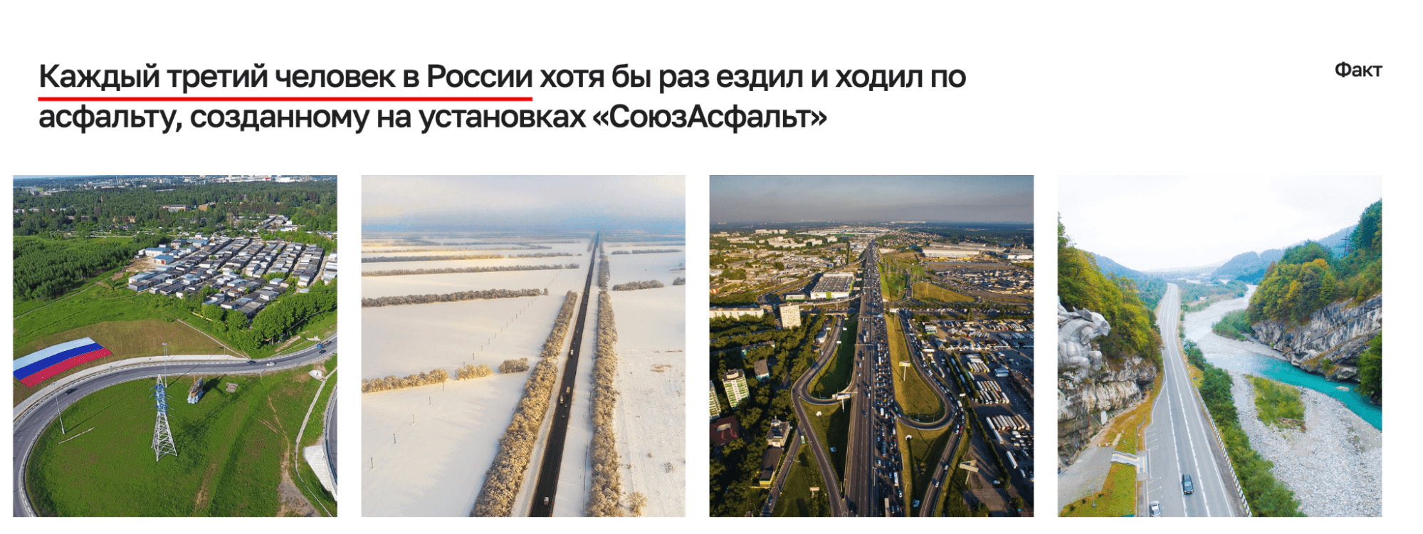 На странице «О компании» вывели статистику, показывающую масштабность проектов «СоюзАсфальт».