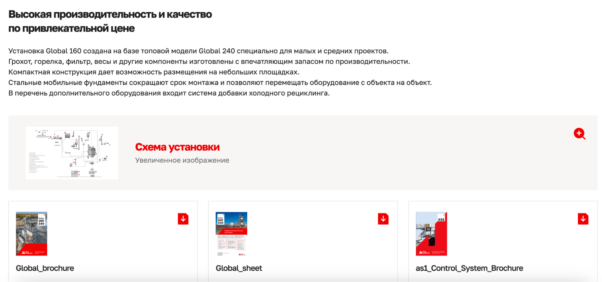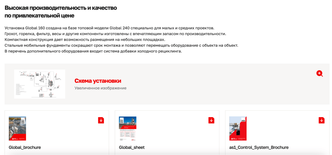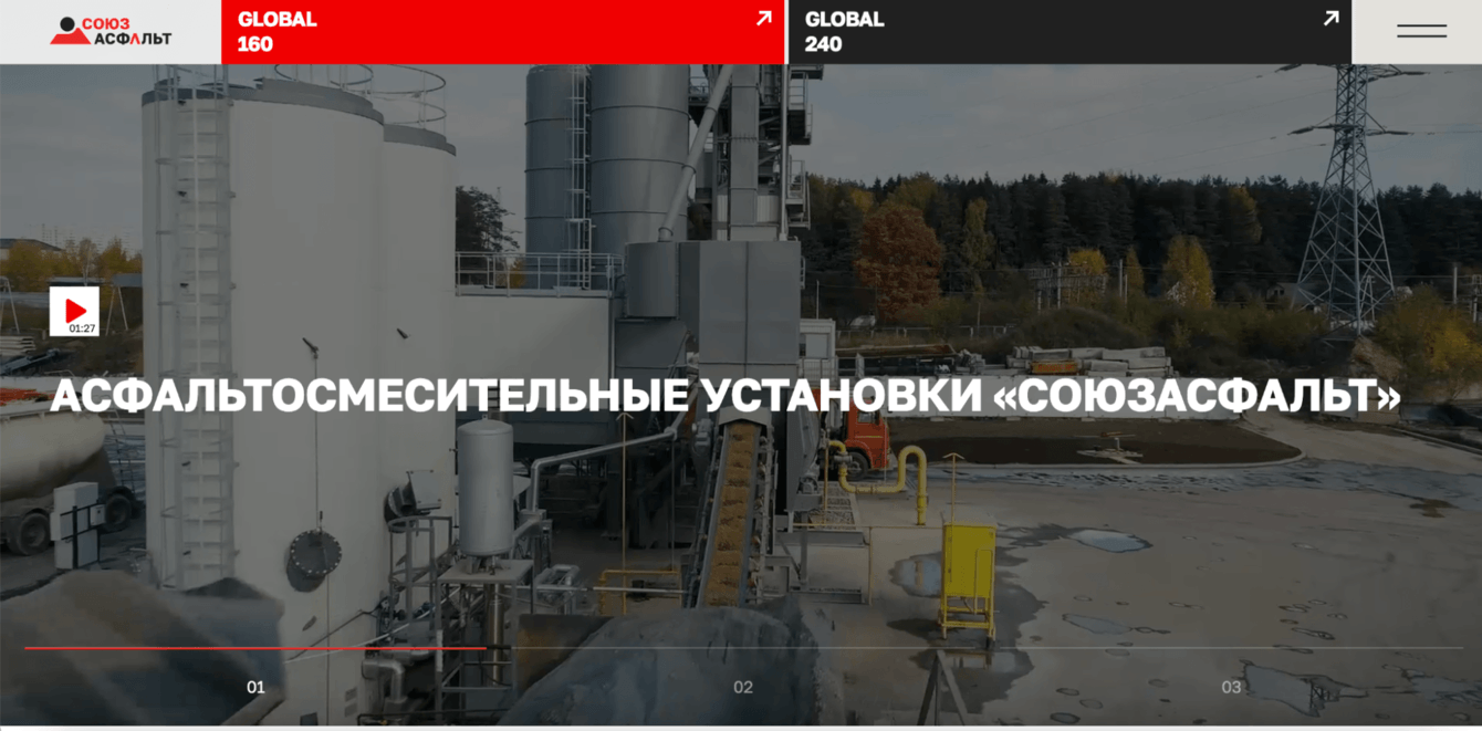 Асфальтосмесительные заводы — сложный продукт, поэтому нужно сделать акцент на его визуальной составляющей: показать, как он выглядит и работает.