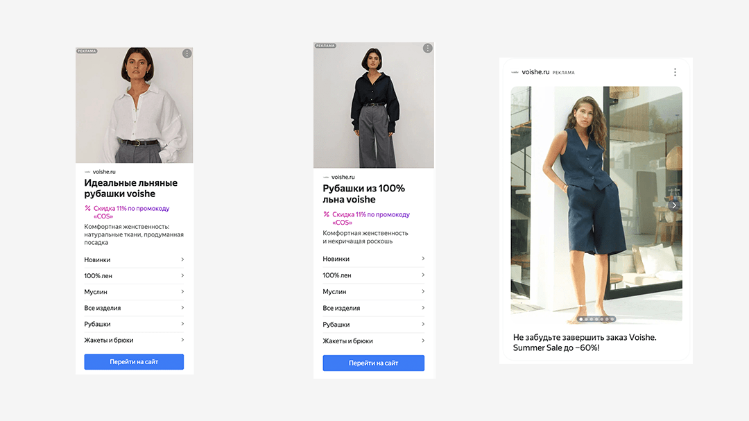 Voishe — это популярный льняной бренд в России, известный своими качественными, стильными и удобными изделиями одежды. Целевая аудитория бренда, это женщины 25 — 44 лет с доходом выше среднего, которые ценят натуральные ткани и устойчивую моду. Лето — особенно важный сезон для Voishe, поскольку бренд специализируется на льняных изделиях и является признанным лидером в этой области.