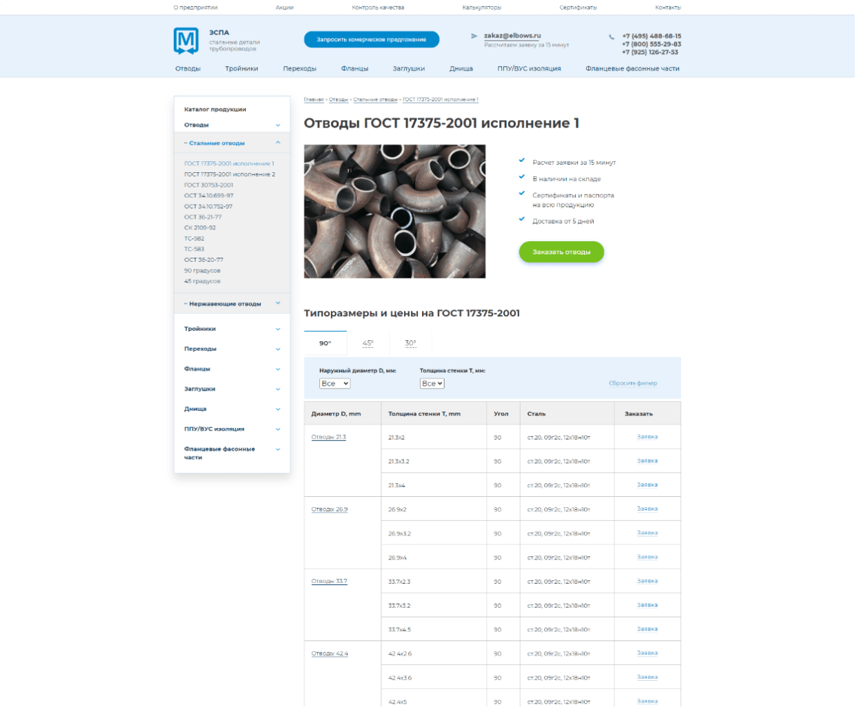 Выяснили что пользователи ищут продукцию по используя до 4-х различных масок: по ГОСТ/ТУ, диаметру и стенке трубы, по марке стали, а также по методу изготовления трубы. Все это легло в основу структуры сайта.