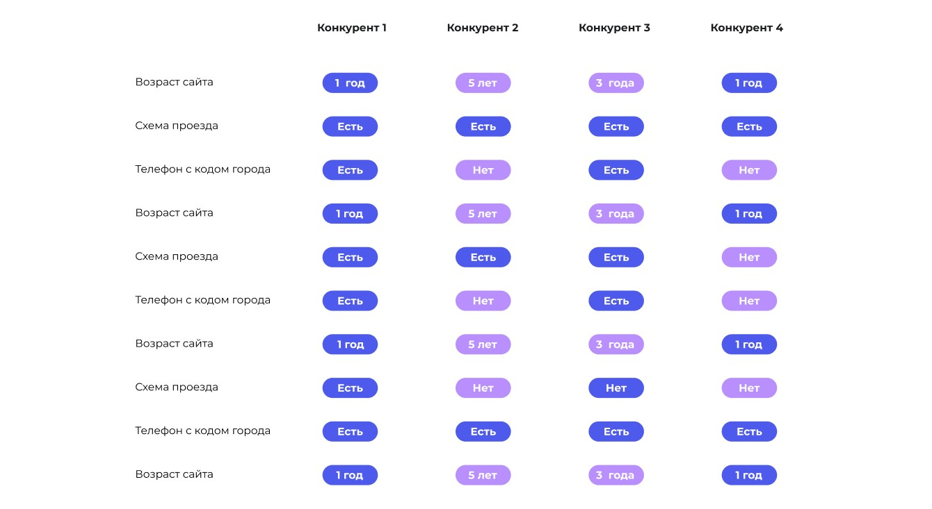У нас получился наглядный бенчмаркетинг, на основании которого видны все зоны, которые хуже всего закрыты у конкурентов и за счет чего мы можем выиграть.