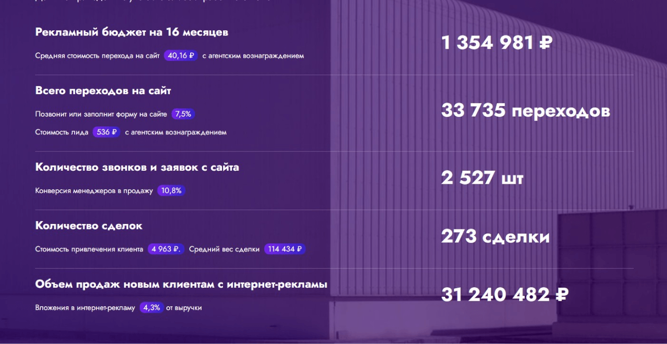 В течение 16 месяцев работы и сопровождения контекстной рекламы мы достигли следующих показателей.
