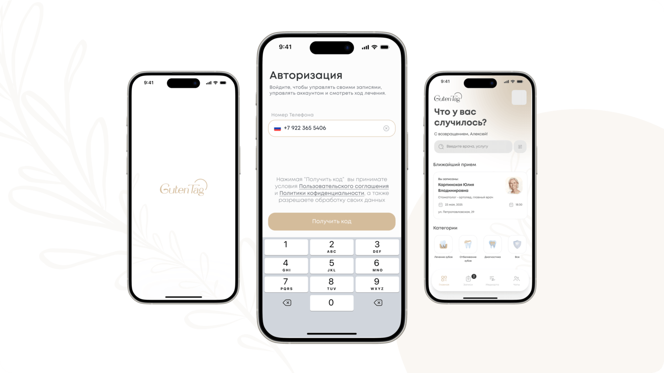 Перед нами стояла комплексная задача: создать премиальное мобильное приложение, в котором стиль и репутация клиники читаются с первого экрана, обеспечить глубокую интеграцию с внутренними системами записи и управления, а также разработать инструменты цифрового удержания и роста.