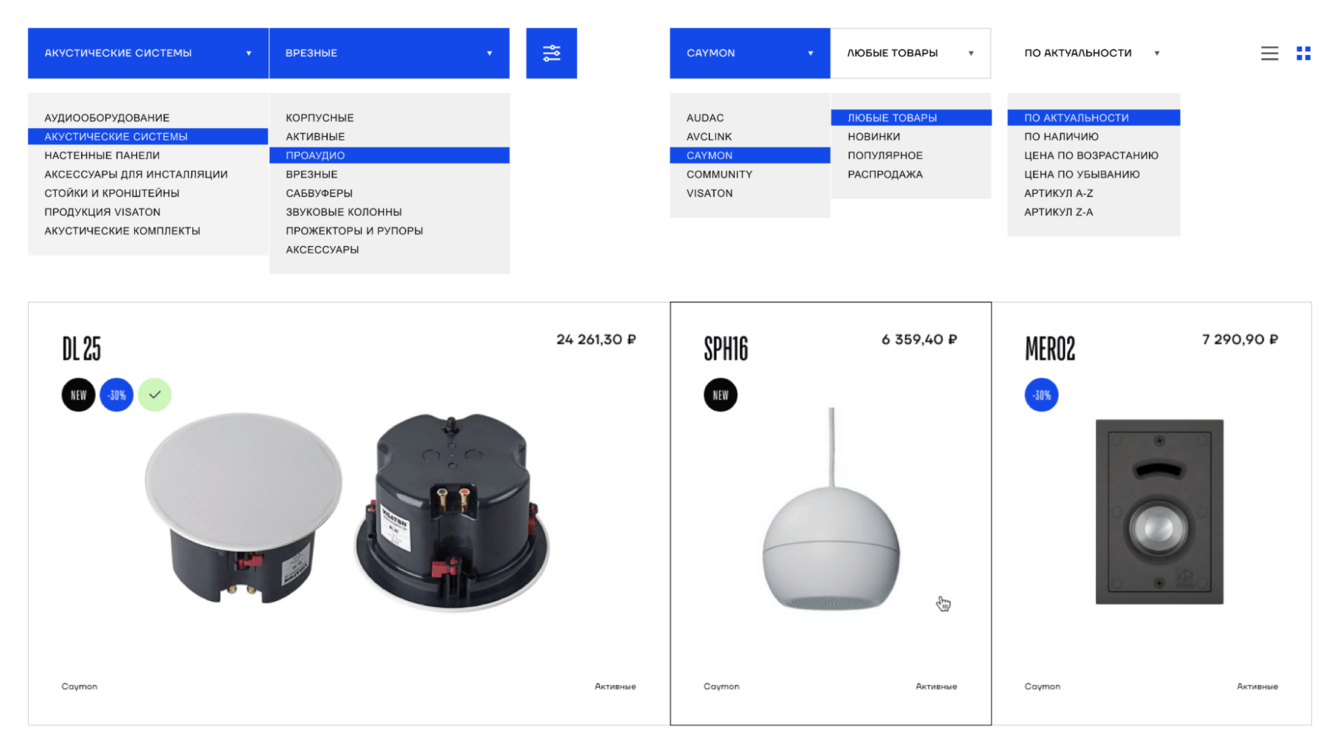 Мы настроили систему фильтров так, что неважно, с какой точки пользователь начинает поиск — через каталог, бренды или готовые решения, — в итоге он попадает в единую систему. И там он сможет отсортировать товары по другим параметрам, например по цене или по актуальности.
