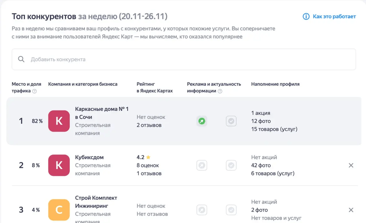 Необходимо заполнить по максимуму каждый раздел карточки организации, чтобы получить знак «Информация подтверждена владельцем» — синюю галочку. Она повышает доверие — пользователи скорее выберут компанию с галочкой, чем без.