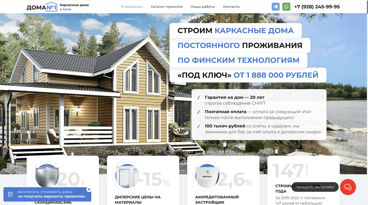 Итого: получаете сайт, который превращает заинтересованных клиентов в звонки и заявки. Пример такого сайта, который может быть у вас: https://karkasnye-doma-v-novgorode.ru