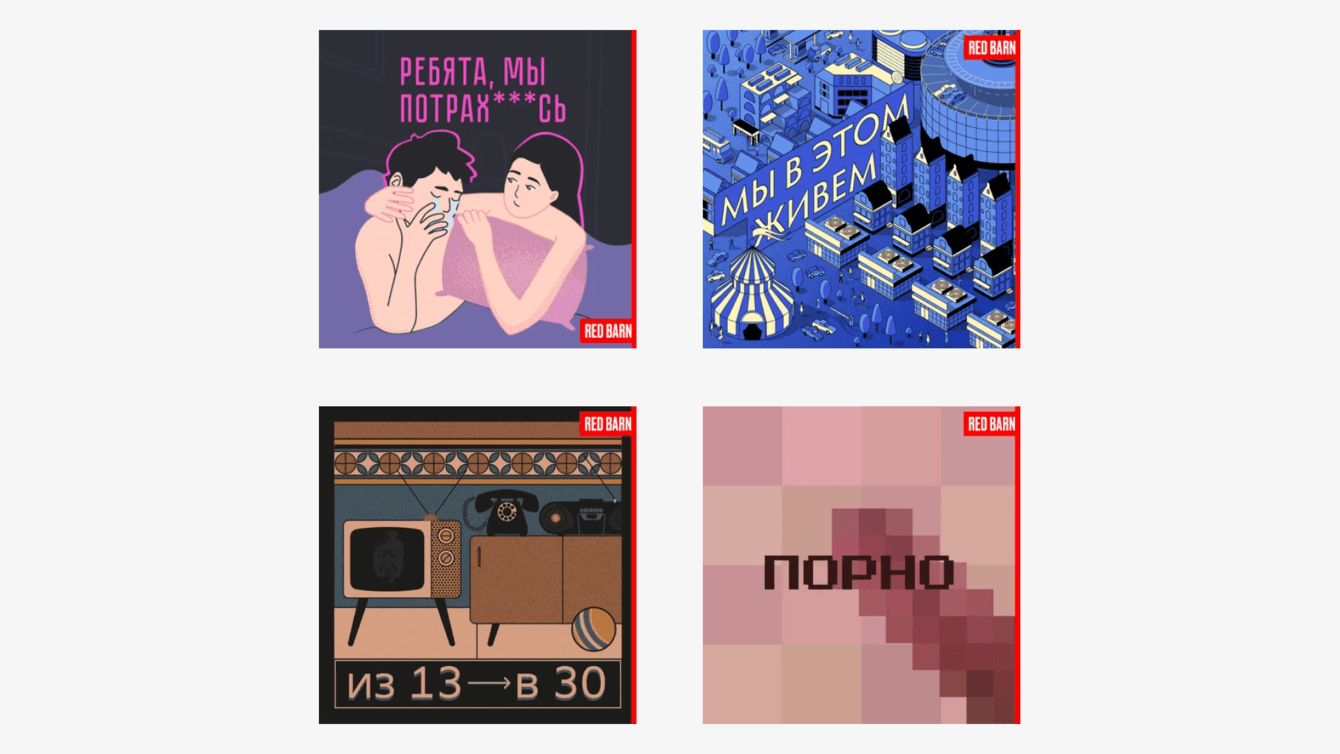 - «Порно»: развлекательный подкаст, в котором трое друзей собираются каждую пятницу, чтобы обсудить порно-индустрию, актеров, тренды и лучшие ролики всех времен и народов.